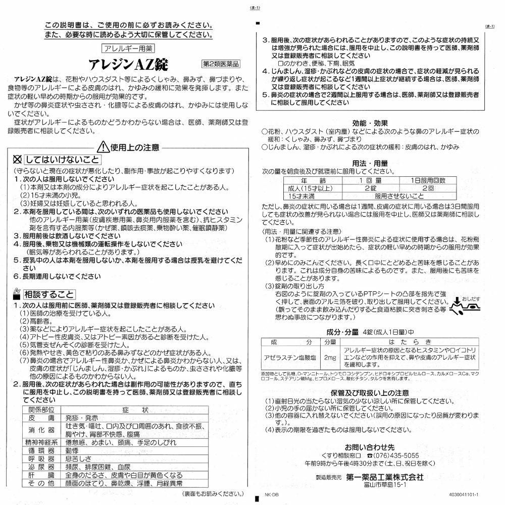他の画像を見る アレルギー専用薬【第2類医薬品】 ★アレジンAZ錠 花粉症 花粉 薬 鼻炎 くしゃみ 抗ヒスタミン 抗ロイコトリエン 販売価格 ¥ 1,045 税込 (0) 申し訳ございませんが、只今在庫切れとなっており、ご注文いただけません。 お気に入りに登録する
